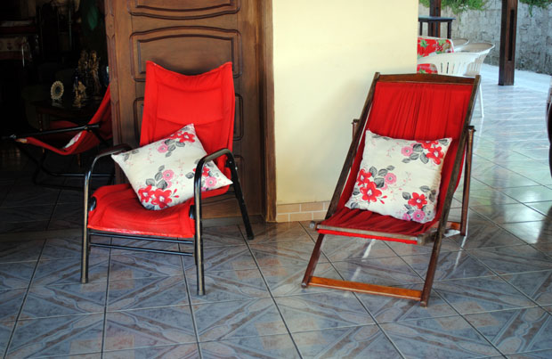 Na sacada, nossos clientes desfrutam de um bom descanso e de um ambiente arejado para refeições.